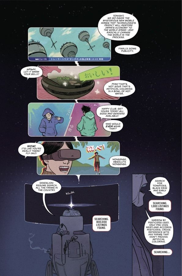An official synopsis for the Image anthology reads as follows: “In Dandelion, when climate change and automation disrupt the lives of millions, a new civilization is formed in the skies — one that threatens the wealthy citizens who’ve been hoarding Earth’s meager resources for themselves.”