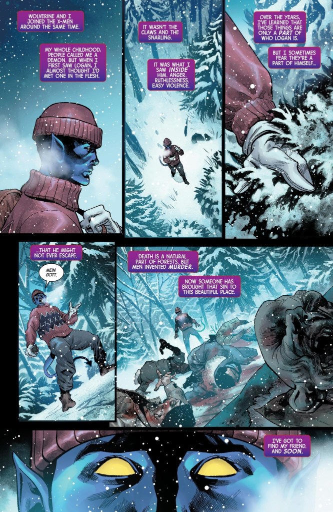 Nightcrawler comes to the forest, seeking out his old friend. While Logan may want to forget the world, Kurt Wagner feels that the world still needs the Wolverine. However, Logan’s old enemy, Cyber, is also on the hunt for him. And there is another force, an old predator, which is hunting all who live in the forest. This sets the stage for an epic battle in which Logan must once again prove himself the best there is at what he does.