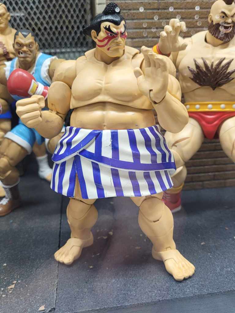 As a company, Jada Toys is best known for metal cars that come with a metal figurine to stand beside (rather than sit inside) them — Batman and his Batmobile, Deadpool and Dopinder’s cab, etc. In the last five years, however, they’ve really made inroads into action figures, leaning heavily on video game licenses. They’re the latest company to pick up Street Fighter, and their Comic-Con reveals of T. Hawk, Zangief, and E. Honda round out the original world warriors with a balance of affordability and sturdy construction.